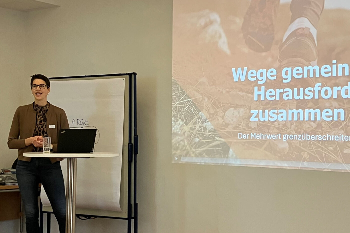 Angeregt durch einen Impulsvortrag von Helena Gey (FH Kufstein) zum Thema „Wege gemeinsam gehen, Herausforderungen gemeinsam meistern“ wurden die gemeinsamen Herausforderungen und Entwicklungspotentiale im Grenzraum ausführlich besprochen. Im Fokus standen dabei nicht nur erfolgreich umgesetzte Projekte wie der Grenzgängerpodcast „herent & drent“, die Donaulimes Welterbe Runde oder die Entdecker Radtour sondern auch die gemeinsamen Herausforderungen und Projektideen rund um das Thema „Mobilität und Tourismus“ sowie die zukunftsweisenden Chancen, die sich der gesamten Region durch das aktuell laufende Interreg Großprojekt „Digitalisierungsoffensive Ostbayern–Oberösterreich“ bieten.