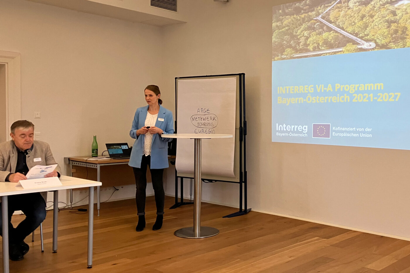 Darüber hinaus informierte Regionalmanagerin Jennifer Daferner (Regionalmanagement OÖ) zusammen mit Olga Murauer-Fedik (Land OÖ, Koordinierungsstelle für EU-Regionalpolitik) über die verschiedenen Fördermöglichkeiten im EU-Förderprogramm Interreg Bayern-Österreich 2021-2027.
