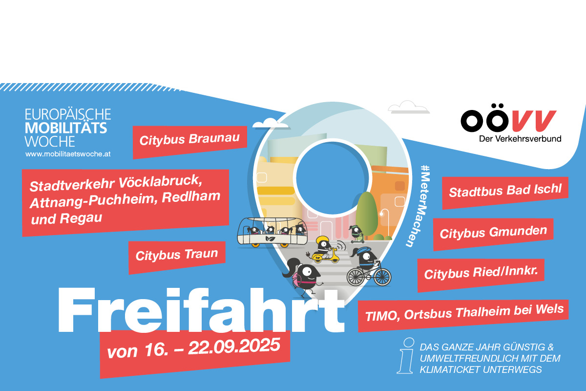 Von 16. bis 22. September findet wieder die EUROPÄISCHE MOBILITÄTSWOCHE (EMW) statt. Die EMW ist eine europäischer Initiative und bietet vor allem Städten und Gemeinden die Chance, klimafreundliche und zukunftsweisende Mobilität vor Ort sichtbar zu machen und dafür zu begeistern. Auch das Mühlviertel ist wieder mit spannenden Veranstaltungen vertreten. Hier eine kleine Auswahl: Donnerstag, 18.9.2025: … Weiterlesen