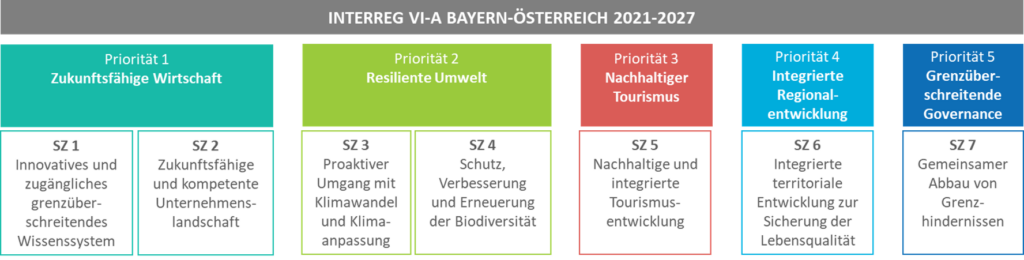 Im Programm INTERREG Bayern-Österreich 2021-2027 stehen insgesamt 61,5 Mio. Euro aus dem Europäischen Fonds für Regionale Entwicklung (EFRE) zur Förderung von grenzübergreifenden Projekten, die einen Beitrag zur Weiterentwicklung des Programmraums entlang der bayerisch-österreichischen Grenze vom Böhmerwald bis zum Bodensee leisten und die gemeinsam von zumindest je einem Projektpartner aus Bayern und Österreich entwickelt, finanziert und umgesetzt werden, zur Verfügung. Der Fördersatz beträgt bis zu 75 % der förderbaren Projektkosten.
