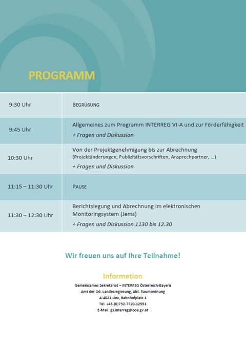Aufgrund der Vielzahl von geänderten Rahmenbedingungen in der neuen Programmperiode wäre es uns ein Anliegen, dass Sie sich als Projektträger für dieses Seminar Zeit nehmen.